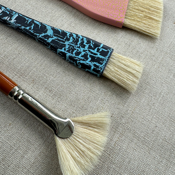 The No.16 Hog fan long handle brush is excellent for creating wispy textures.
