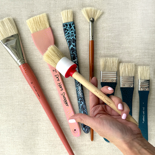 This exclusive set contains eight large Pro Hart Swagger hog hair paintbrushes designed to cater to diverse artistic needs: