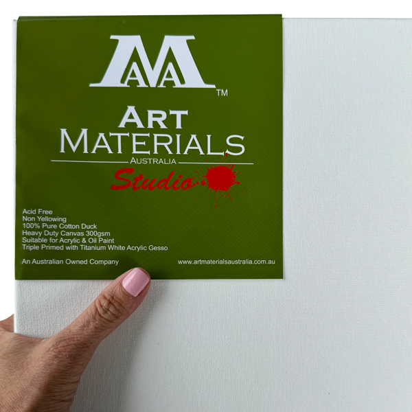 Art materials canvases 16×20″; Have you been searching for a canvas that isn’t a beginner but not a top-of-the-line artist-quality canvas? If so, the Art Materials Australia (AMA) Studio range is ideal. It is made from a dense 300 gsm heavy-weight 100% unbleached cotton duck fabric, making these Studio canvases an excellent surface for all paint and mixed media techniques. The cotton surface has no polyester and features a medium-toothed texture triple primed with a quality acid-free, non-yellowing gesso. The range of canvas has excellent archival qualities.